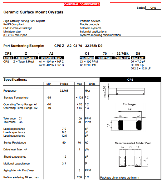 | Cardinal晶振 | 單位 | CPS晶振 | 石英晶振基本條件 |