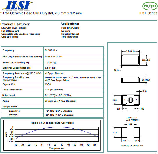 ILSI晶振,IL3T晶振,壓電石英晶體.小型表面貼片晶振型,是標(biāo)準(zhǔn)的石英晶體諧振器,適用于寬溫范圍的電子數(shù)碼產(chǎn)品,家電電器及MP3,MP4,播放器,單片機(jī)等領(lǐng)域.可對應(yīng)32.768K以上的頻率,在電子數(shù)碼產(chǎn)品,以及家電相關(guān)電器領(lǐng)域里面發(fā)揮優(yōu)良的電氣特性,滿足無鉛焊接的回流溫度曲線要求.