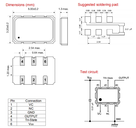 貼片環保5032晶振可能會在某些條件下受到損壞.例如從桌上跌落或在貼裝過程中受到沖擊.如果產品已受過沖擊請勿使用.