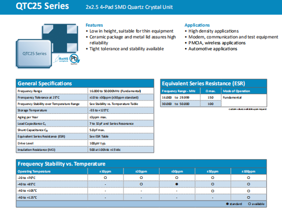 | Quarztechnik晶振 | 單位 | QTC25晶振 | 石英晶振基本條件 |