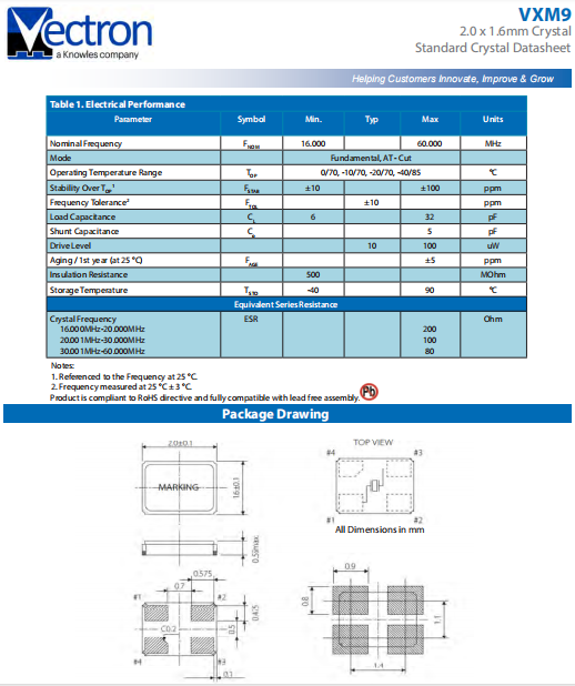 | VECTRON晶振 | 單位 | VXM9晶振 | 石英晶振基本條件 |
