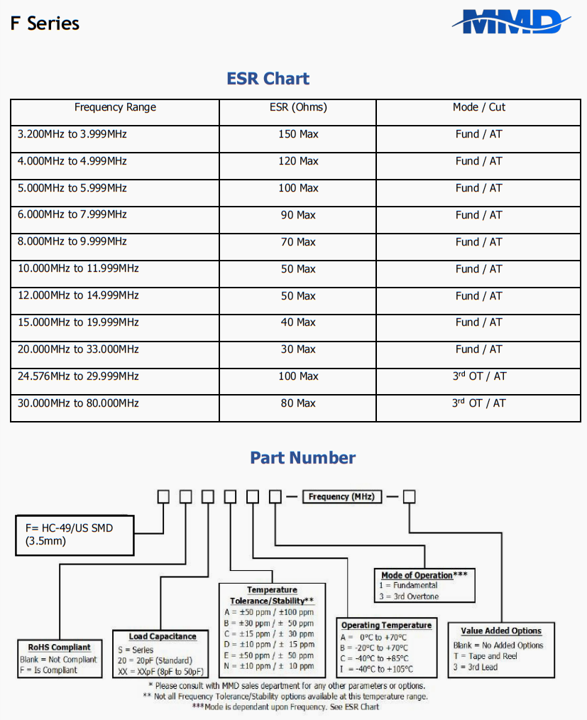 | FF40BI1-8.704MHZ-T | MMD | F | -40°C ~ 105°C | 8.704 MHz | ±50ppm | ±30ppm | 40 pF |