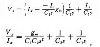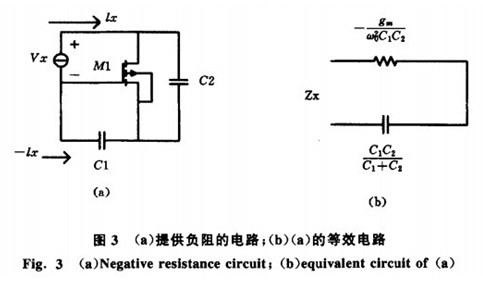 對于S=jw加, 此阻抗由一個(gè)即是-gm/(ClCZw2)的負(fù)電阻串連C1 和C2組成(圖3(b))