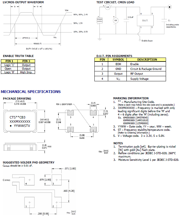 | CB3LV-3C-125M0000 | CTS晶振 | CB3LV | 125MHz | ±50ppm | 4-SMD, No Lead |