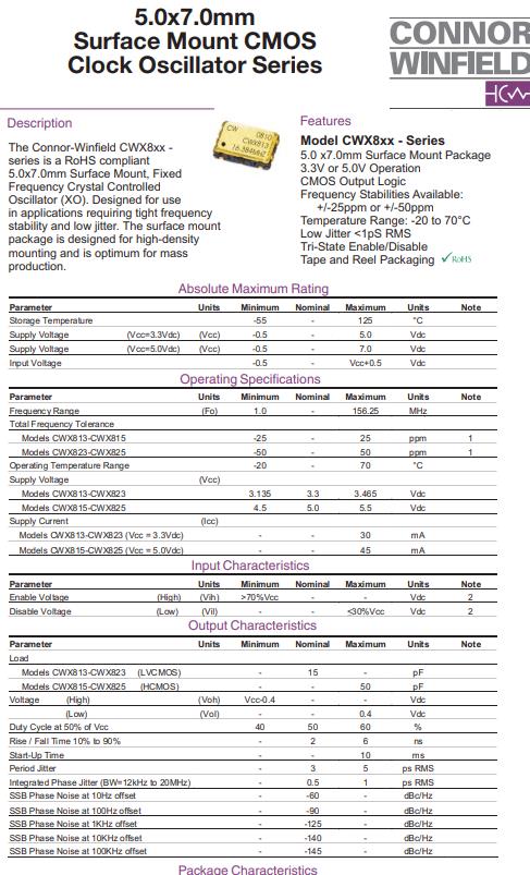 | CWX823-080.0M | Connor-Winfield振蕩器 | CWX823 | 80MHz | -20°C ~ 70°C |