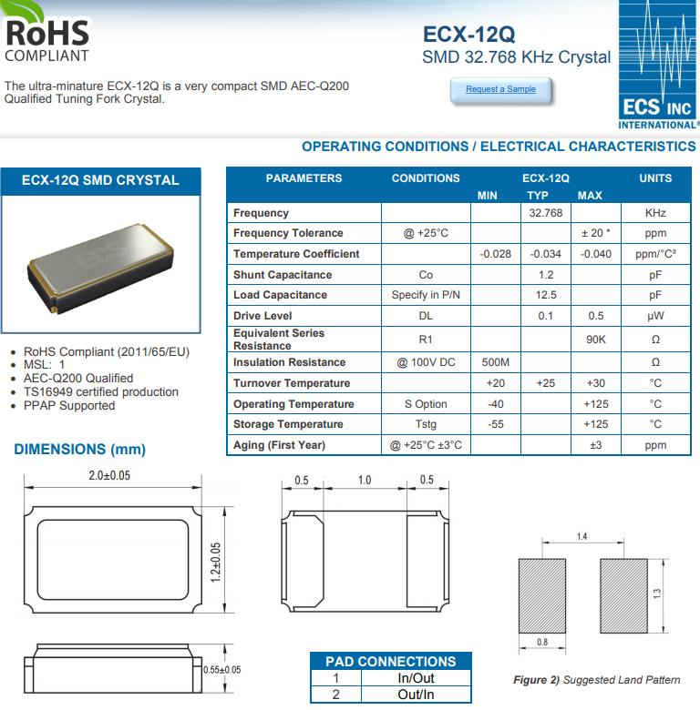 更多>>ECS的超小型ECS-.327-12.5-12QS-TR為一款超級緊湊的合格晶體