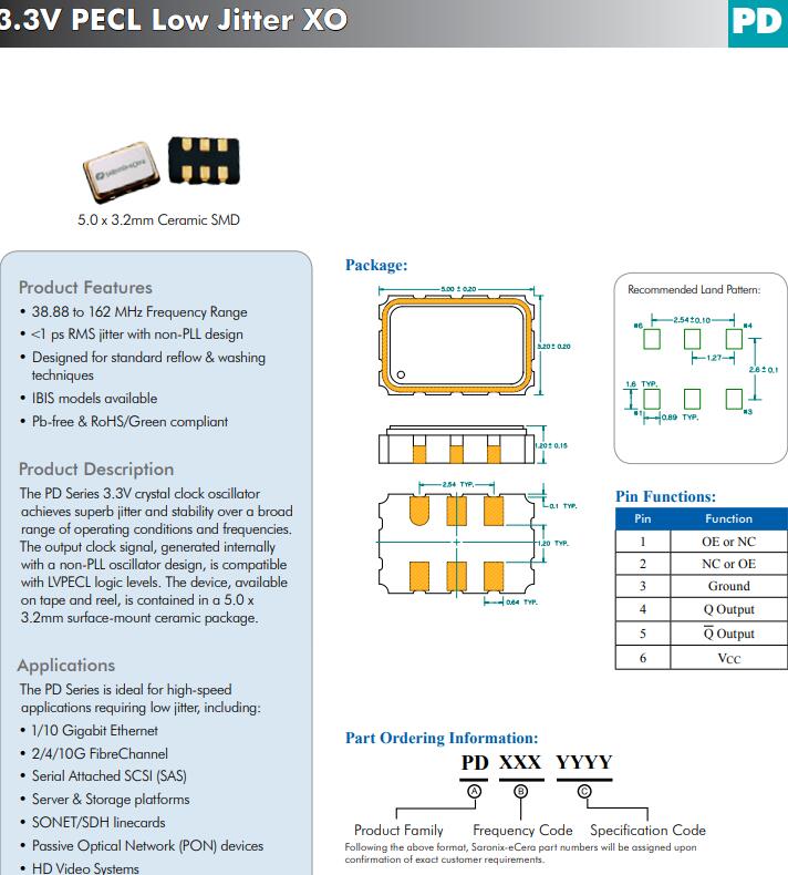 PD系列3.3V時(shí)鐘晶體振蕩器實(shí)現(xiàn)卓越的抖動(dòng)和穩(wěn)定的廣泛操作條件和頻率的范圍。內(nèi)部產(chǎn)生的輸出時(shí)鐘信號(hào)與非鎖相環(huán)振蕩器設(shè)計(jì),是兼容的LVPECL邏輯級(jí)別。可用的設(shè)備,在磁帶和卷軸上,包含在一個(gè)5.0 x3.2mm表面貼裝陶瓷封裝。