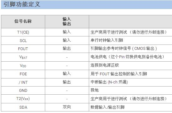 基本性能 時鐘和日歷、報警、定時器、頻率輸出、溫度傳感器與內(nèi)建電源切換等