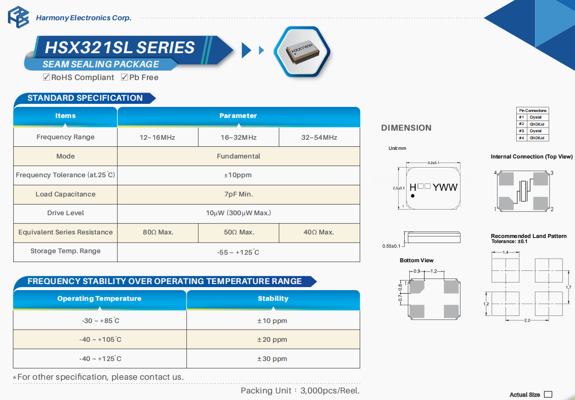 | X3S010000BK1H-X | 加高晶振 | HSX321S | 10 MHz | ±30ppm | 20pF |