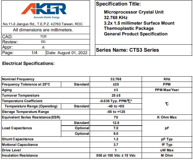 | CTS3-32.768-7-20-R | Aker Technology | 石英晶體 | Crystal 0.032768MHz ±20ppm (Tol) 7pF FUND 65000Ohm 2-Pin SMD T/R |